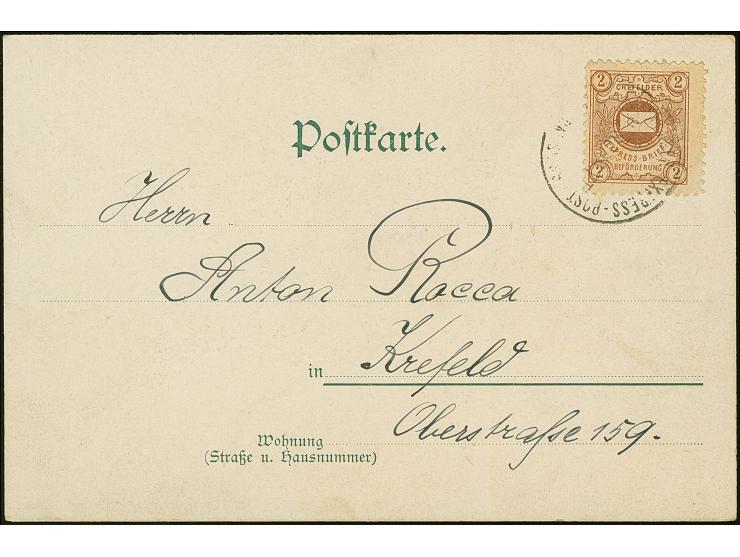 Crefelder Expreß-Briefbeförderung: 1893/1900, 2 Pfg. rotbraun mit Stempel “CREFELDER EXPRESS-POST KÖNIGSSSTRASSE 89 H. SCHATT” auf Postkarte mit Text und Datierung “Krefeld, den 31.12.1898”, in guter Erhaltung