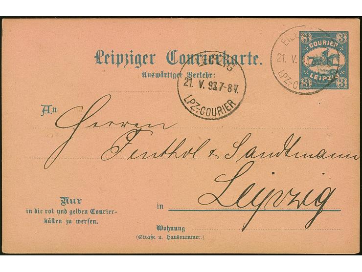 Courier: 1893, Ganzsachenkarte 3 Pfg. mit Stempel “EILENBURG LPZ.-COURIER 21.V.93” und viel Text nach Leipzig mit vorderseitigem Ankunftsstempel, in einwandfreier Erhaltung