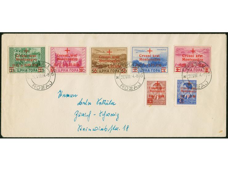 1944, Rotes Kreuz 0,15+0,85 af 25 Centesimi - 0,50+2 auf 2 Lire, sauber mit Stempel “ROZAJ 20.VIII.44” auf beschriftetem Umschlag, tadellos, Fotoattest Kleymann BPP (2012)