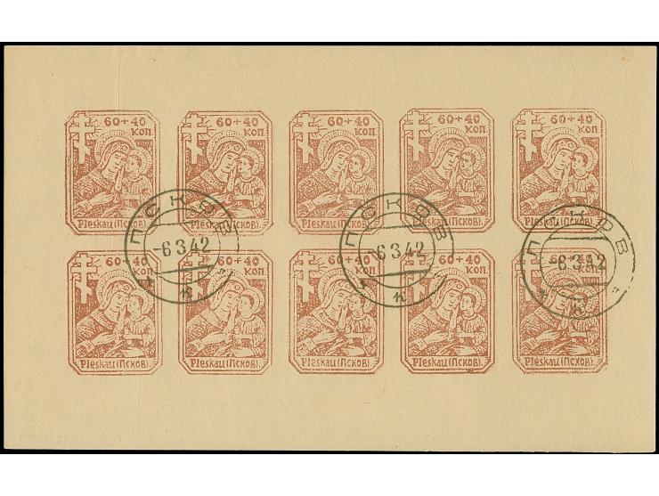 1942, Stadtkindergärten 60 Kopeken, ungezähnter Kleinbogen, sauber gestempelt “PSKOV -6.3.42”, der linke Wert kleine, herstellungsbedingte Papierfalte, tadellos, sign. EKeiler