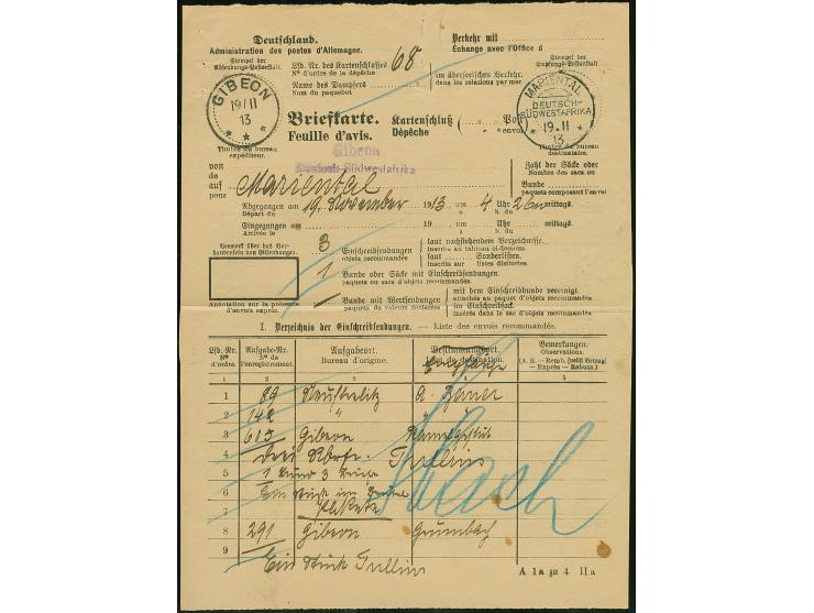 “MARIENTAL DSWA 19.11.13” klar auf Formular “Briefkarte” von “GIBEON 19.11.13” ohne Gebührenvermerke. Das Formular wie üblich waagerecht gefaltet und kleine Randspuren, ansonsten in guter Erhaltung