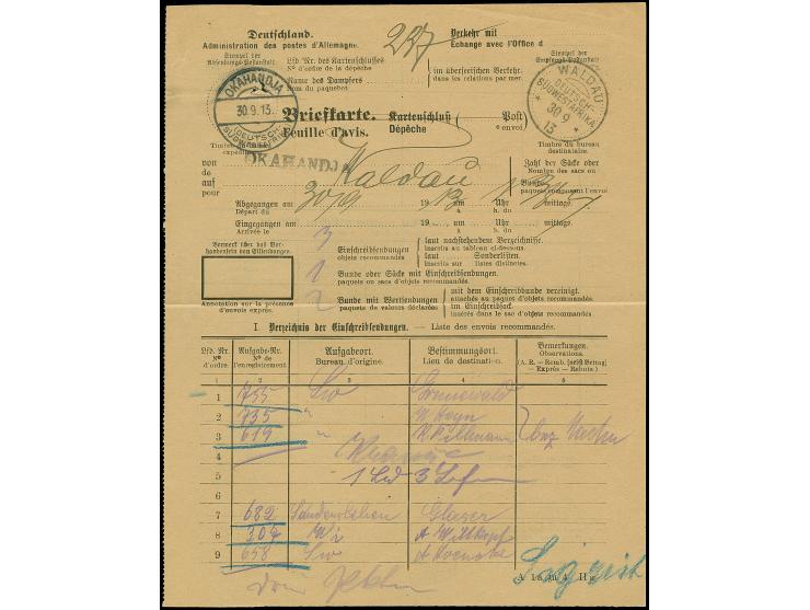 “WALDAU DSWA 30.09.13” klar auf Formular “Briefkarte” von “OKAHANDJA DSWA 30.9.13"” ohne Gebührenvermerke. Das Formular wie üblich waagerecht gefaltet und kleine Randspuren, ansonsten in guter Erhaltung