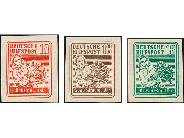 1944, Bäuerin 18 Pfg., lebhaftrot, schwärzlichgelbsmaragdgrün und dunkelrotbraun, kpl., ungezähnt, auf Papier ohne Gummi wie verausgabt, tadellos, die Auflage beträgt je nur 42 Stück, sehr selten, sign. EKeiler sowie je Fotoattest Brunel (2021)