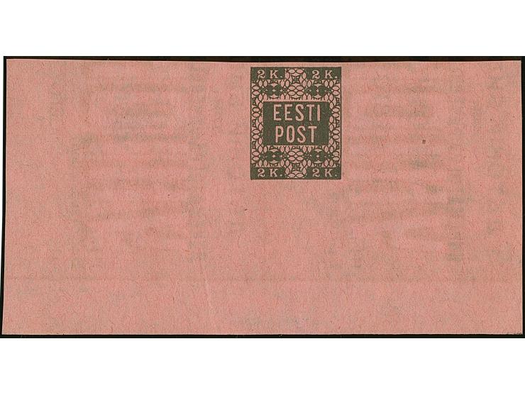 1918, Flower issue 2 kopeks black, Proof printed on reverse of cinema ticket on red paper, with large margins, from the bottom of the sheet, no gum as issued, fine, certificate Löbbering BPP (2014)