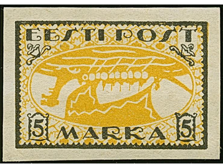 1919, Viking ship 5 mark black/orangeyellow, with inverted center, unused, very fine and rare, certificate Löbbering BPP (2015)
