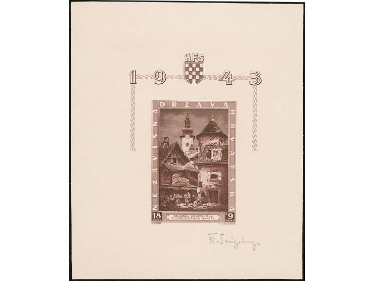 1943,  3rd. Stamp exhibition 18+9 k. souvenir sheet, imperforate colour proof in violet, single print on handmade paper without gum, signed by the engraver Prof. Karl Seizingern, fine, rare