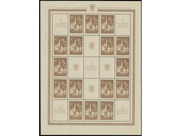 1941, 1. Stamps Exhibition Slavonski Brod 1,50 din. blue black and 3 din. deep brown, miniature sheets, mint never hinged, fine