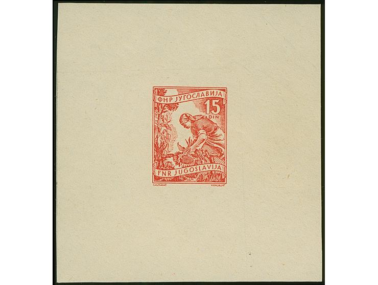 1951, 15 din. red, imperforate proof on white paper (72x75mm), type II, unused without gum, very fine, sign. Tubinovic with certificate