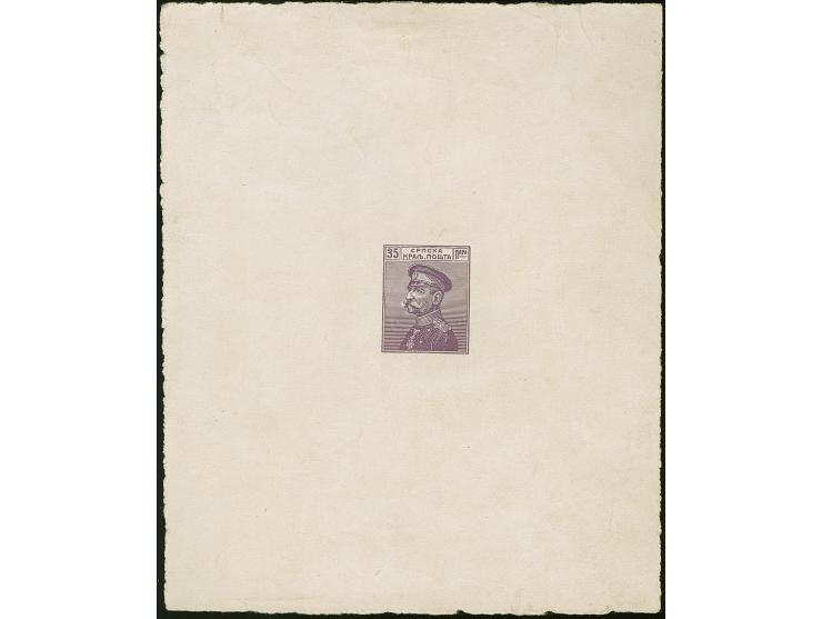 1914, King Peter I. 35 pa violet, imperforate proof on white, ungummed paper (114x140mm), tiny creases at the margins, otherwise fine