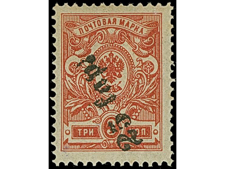 1919, 25 kap on 3 kopeks red, perforated and imperforated, unused, very scarce in unused condition, imperf signed Rucins