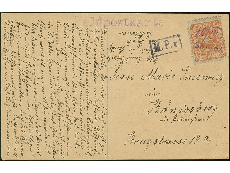 SAKIAI: 1919, First Berlin Issue 30 skatiku orange on blue-gray, with straight-line “SAKIAI” and handwritten date "10/III (1919")" on censored postcard to Königsberg, a scarce an interesting item