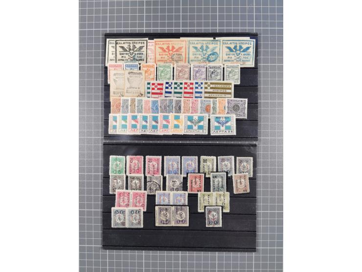 1914/15, North Epirus, small collection with stamps and three covers, starting with Argyrokastron issue mint including high values and pairs, followed with the 1940-41 issues with both overprinted Youth Organisation sets unmounted mint. The collection includes also one Cover with Argyrokastron values to Jannina, Infantrymen cover to Paris, cover with overprinted lithos and some unofficial stamps and reprints, generally fine, a scarce assembly.