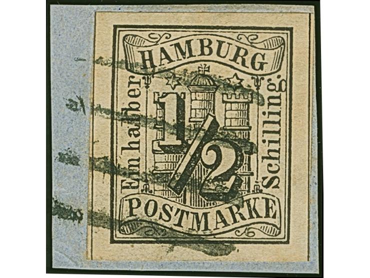 ½ Sch. schwarz, farbfrisch und allseits breitrandig geschnitten, seitlich mit vollen Zwischenlinien, mit sauber aufgesetztem Strichstempel auf kleinem Briefstück, tadellos, ein sehr schönes Stück, u.a. sign. Köhler, Stock und Thier sowie Fotoattest Huylmans BPP (2026)