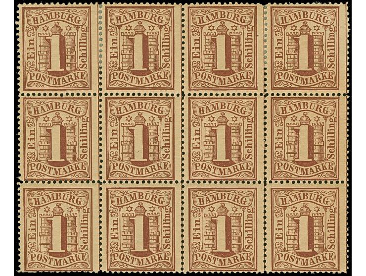 1 Sch. braun im waagerechten 12er-Block, farbfrisch und gut gezähnt, ungebraucht