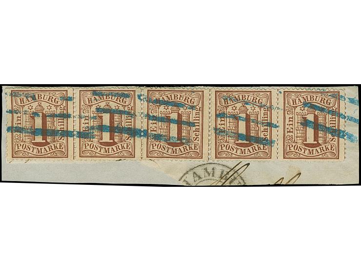 1 Sch. braun, 2 waagerechte Paare und Einzelwert, farbfrisch und gut gezähnt, mit sauber
