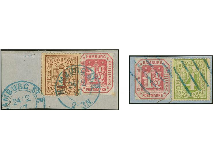 braun bzw. 4 Sch. grün, auf zwei Briefstücken.