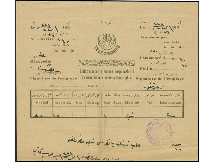 1896, TELGRAF VE POSTAHANE-I HALEB 1319 (A&P no.16) violet cancellation on telegraph, usual file fold, clear and in this colour a very scarce cancellation of early Syria & Turkey