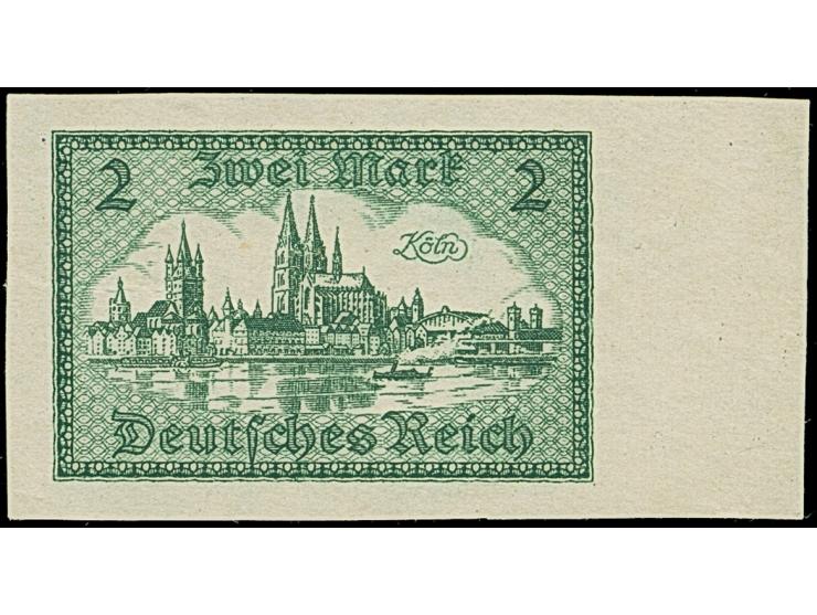1924, Blick auf Alt-Köln 2 M. dunkelgraugrün, Probedruck, ungezähnt auf ungummiertem Papier, ohne Wasserzeichen, mit rechten Bogenrand, in tadelloser Erhaltung. Eine große Seltenheit, ProFi hat keine handvoll Stücke registriert, Fotoattest H.-D. Schlegel BPP (2026)