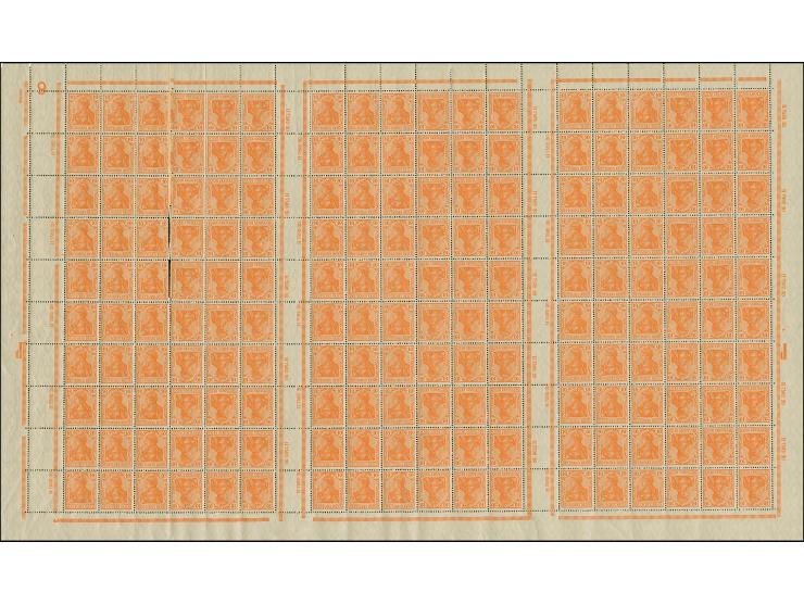 1921, Germania 10 Pfg., kpl. Markenheftchenbogen mit allen Rändern, postfrisch, senkrecht ein mal stark gefaltet, dadurch ca. 20 Werte defekt bzw. fehlerhaft, sonst in guter Erhaltung mit herstellungsbedingten Kalanderbügen
