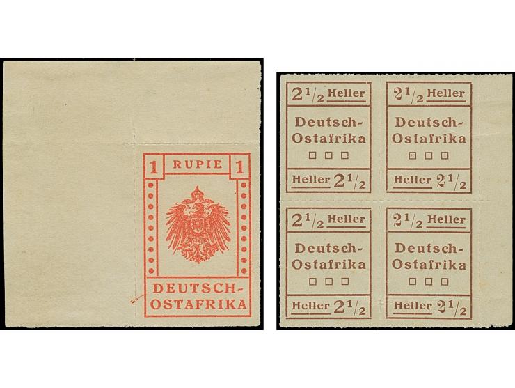 1916,sogenannte 'unvergrabenen Werte' auf weißem Papier: 1 R.,linke obere Bogenecke,2½ H. im Zusammendruck-4er-Block sowie waagerechtes Paar und 2 Einzelstücke 7½H. (einmal Durchstich abgeschnitten, Fotoattest Jäschke-L. BPP).alle sehr frisch, teils kleine Knitter und 2 Werte etwas fleckig, zwei 2½ H.und 1 R. waagerechter Bug. In dieser Form eine große Seltenheit, vom weißen 1 R.-Wert sind nur 2 weitere Stücke registriert.
