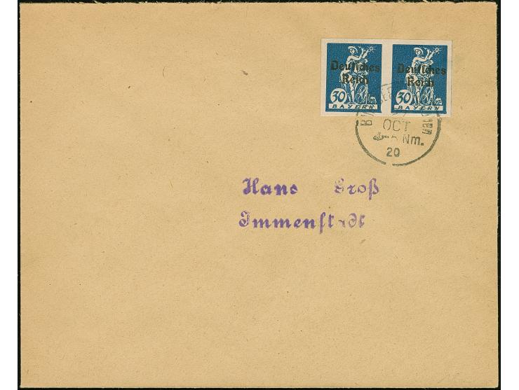 1920, Bayern-Abschied 30 Pfg., ungezähntes waagerechtes Paar, sauber mit Stempel auf Blanko-Brief, tadellos, inenn sign. Infla und Winkler BPP