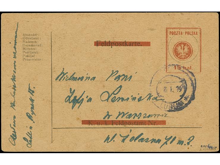1918, Postal stationery card 15h., type I, paper x, used with cds. “LUBLIN 8.I.19” to Warsaw, fine, scarce, signed Korszen and Petriuk with certificate (2025)