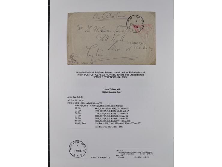 1916/18, WWI Fieldpost 13 covers & cards from Salonique, several cancellations and censors, nice cards, all to England, mainly fine.