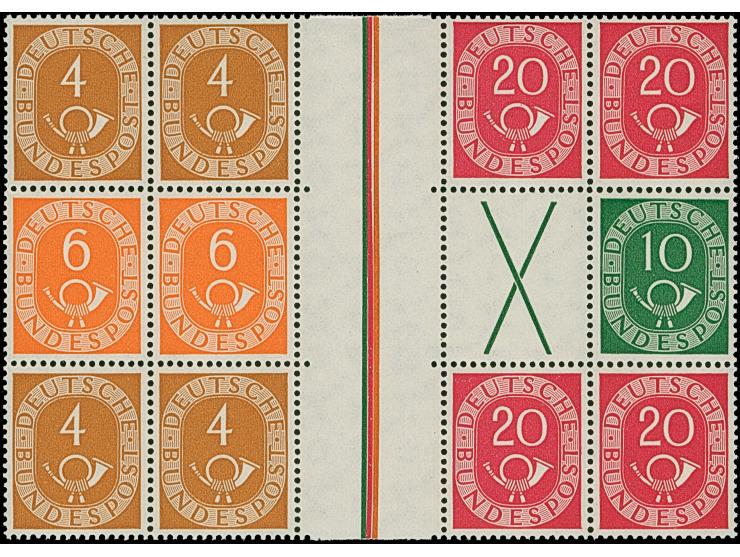 Posthorn 20+X+20 innerhalb eines Blockstückes mit 3 Zwischensteg-Streifen, postfrisch, Fotoattest H.-D.Schlegel BPP (2024)