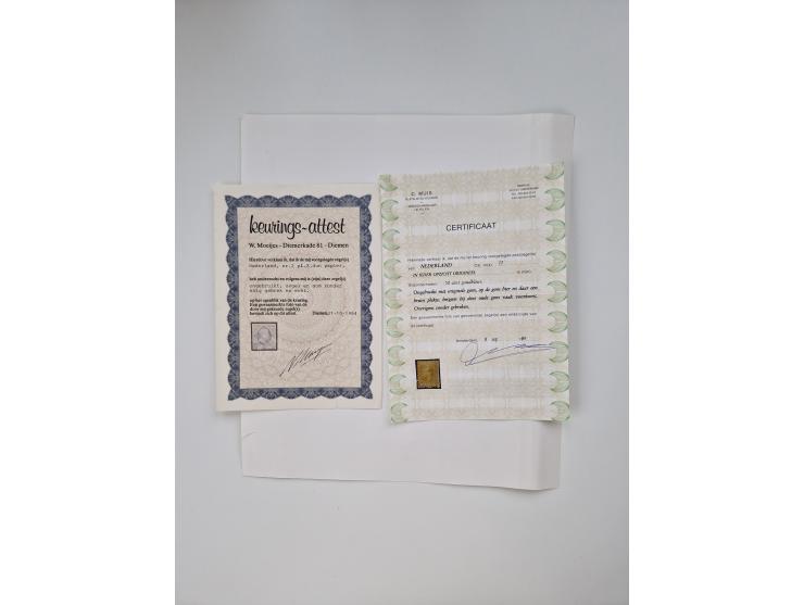 1852/1995, mostly unused and mint never hinged collection incl. official and postage due stamps with a lot of better and complete issues with a.o. Mi.-Nr. 2x (certificate Moeijes), Mi.-Nr. 3 mint never hinged, Mi.-Nr. 12 unused with full original gum (certificate Muis), Mi.-Nr. 28 mint never hinged (certificate Moejis), Mi.-Nr. 29 mint never hinged (Certificate De Nederlandsche Keuringsdinst), Mi.-Nr. 45 mint never hinged (certificate Muis), Mi.-Nr. 66 mint never hinged (certificate Moeijs). Mi.-Nr. 92 mint never hinged (corticate Muis), Mi.-Nr. 132-133 mint never hinged, Mi.-Nr. 151-163B mint never hinged, Mi.-Nr. 453-56 mint never hinged, fire proof stamp Mi.-Nr. 1-7 mint never hinged (signed), post parcel tax stamp Mi-Nr. 1 mint never hinged (certificate N.V.P.H) and 13 telegraph stamps unused/mint never hinged incl. Mi.-Nr. T7 mint never hinged (certificate Muis), mostly fine, a great collection