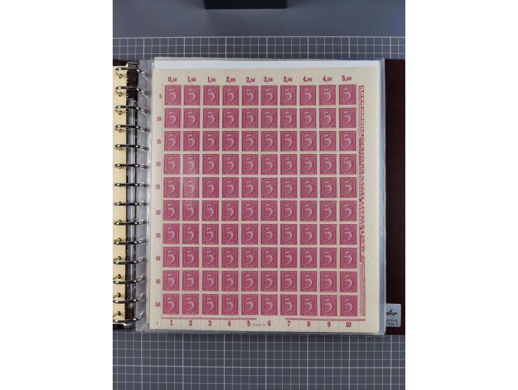 1921, 5 Pfg.-20 M., je in kpl. Bogen, dabei 10 Pfg. ungefaltet, postfrisch kleines Aufklammerungsloch im Rand und leichte Bleistiftbeschriftung, die übrigen teils mit kleinen Einschränkungen, meist postfrisch, gute Erhaltung