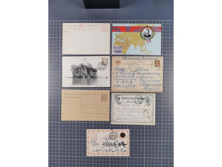 1870/1960 (ca.), over 150 covers and cards, strength in the 1910/40 period, some interesting frankings and usages throughout, noted Austria, Japan, USA, Russia, etc., some better items like Soviet Union 7 k. stationery card with bilingual “ASKHABAD VOLTORATSK 10 1 28”, Dutch East Indies airmail cover with “INDIE-NEDERLAND BATAVIA C16 6 37”, Austria 1936 Olympiafahrt card, etc., mixed condition