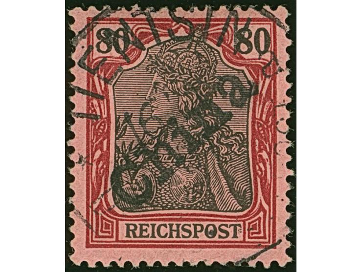 1900, Handstempel 80 Pfg., farbfrisch und normal gezähnt, sauber entwertet “TIENTSIN 16/1 01”, tadellos, ein schönes Exemplar dieser seltenen Marke, sign. Thier, sowie Köhler mit Fotoattest (1937) und Fotoattest Bothe BPP (1984)
