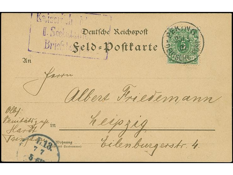 PETSCHILI: Krone/Adler 5 Pfg. opalgrün, farbfrisch und sehr gut gezähnt, sauber mit Stempel “PEKING 25/5 01” auf Karte mit nebengesetztem Briefstück “Kaiserlich Marine II. Seebatalloins", adressiert an Albert Friedemann nach Leipzig, tadellos, selten, sign. Kilian