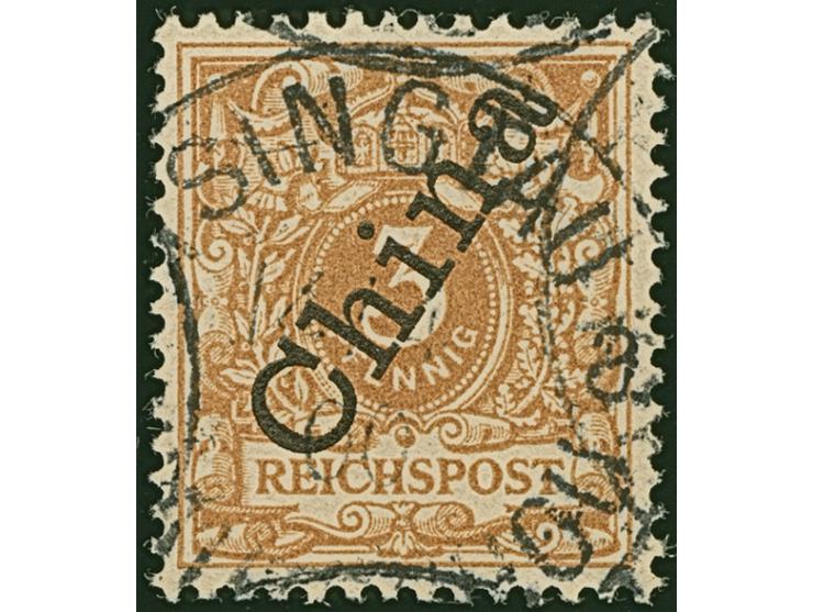1898/1901, China Steiler Aufdruck 3 Pfg. hellocker, farbfrisch und sehr gut gezähnt, sauber mit Stempel “TSINGTAU KAIUTSCHOU 14/4 00” entwertet, tadellos, ein schönes Stück dieser seltenen Marke, Fotoattest Steuer BPP (2008)