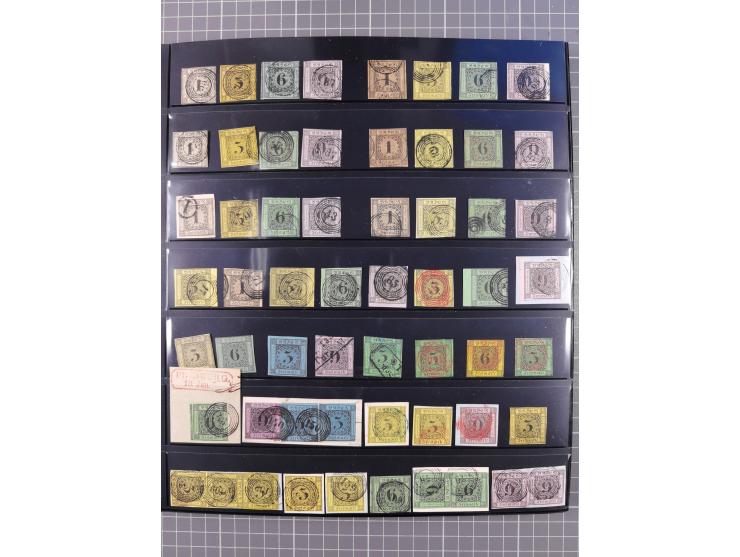1849/70 (ca.), ungebrauchte und gestempelte reichhaltige Partie im Steckalbum, dabei viele bessere Werte, schöne Briefstücke und einige Besonderheiten