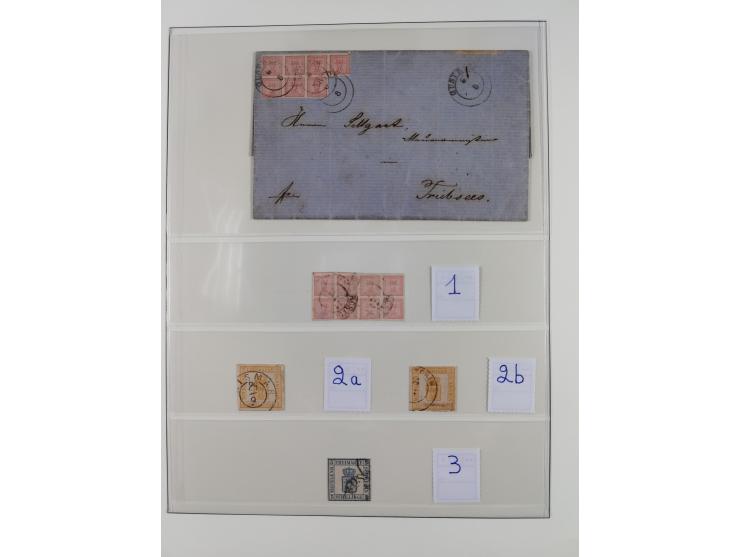 1856/67, gestempelte Sammlung mit 2 Briefen, dabei Schwerin Mi.4 (Attest Berger BPP), 6b (Befund Berger BPP) und Strelitz 1a, 2a, 5 und 6 (jeweils Fotoattest Jäschke-L. BPP)