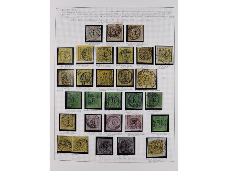 1851/1920, gestempelte Sammlung mit fast allen Farben und vielen Typen, dabei u.a. Mi. 1c, 2b, 4c, 5 I und II, 10 a, 11 b, 15,19 xb, 20, 24,31 c, 41 b, 42 a und b, 188 und 264 d und auch einnige Briiefe. Vieles signiert, fast alle besseren Stücke Befunde oder Atteste BPP. Ein schönes und reichhaltiges Objekt.