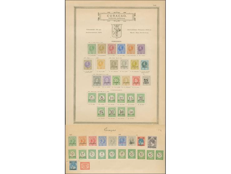 1873, page from the Royal Swedish General Post Office collection with stamps mounted on both sides, stamps handstamped and overprinted “SPECIMEN” include 1889 King William III 15 c., 30 c. and 1.50 g., 1889 Numerals 1-5 c., postage due 2 ½-50 c., 1892 Queen Wilhelmina 12 ½ c., 15 c. and 25 c., also some of the issued values, all fresh colours, scarce (SG of specimen stamps ca. £1.850,-) (Mi.-Nr. 15Sp, 16Sp, 18Sp, 19-23Sp, 26-28Sp, P1-10Sp, etc.)