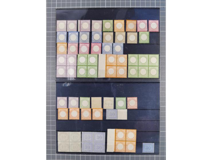 1872/74, ungebrauchte und postfrische Partie mit besseren Marken kleiner Schild, Farben und Viererblocks. Dabei u.a. 2x Mi.-Nr. 1 ungebraucht (je FA Krug BPP), Mi.-Nr. 2 ungebraucht (FA Krug BPP), Mi.-Nr. 7 ungebraucht (FA Krug BPP), Mi.-Nr. 24 ungebraucht (zwei ausgebesserte Stellchen, FB Jäschke-L. BPP) und Mi.-Nr. 23 ungebraucht (FA Brugger BPP), sowie ungebraucht/postfrische Viererblocks Mi.-Nr. 12-13, 15, 16, 17a, 18, 20, 22 und 25 bzw. 6er-Blocks Mi.-Nr. 17a und 23a. Meist in guter Erhaltung, vieles signiert bzw. mit FB und Fotoattesten