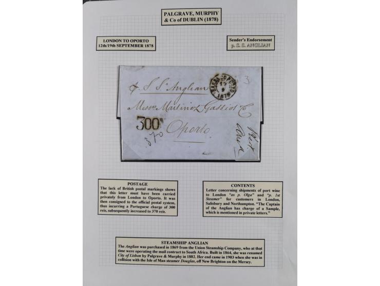 1797/1871, 20 letters, all passing the British Post Offices in Lisbon, with different and interesting markings and cancels, an interesting group neatly described on pages