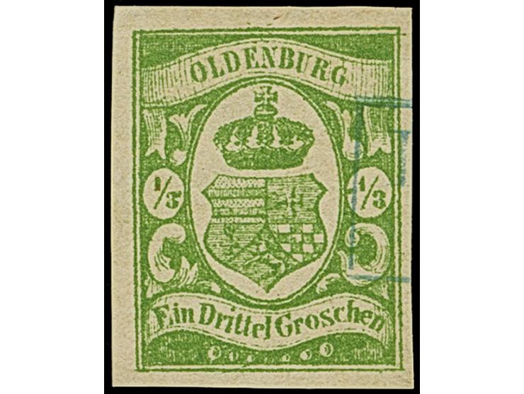 1861, ⅓ Sgr. moosgrün, farbfrisch und allseits breitrandig, leicht entwertet durch Ra. von Löningen. Tadellos. Fotoattest Stegmüller BPP (2026)
