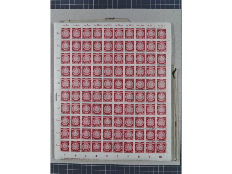 1957, Zirkelbogen 30 Pfg. mit Plattenfehler '2 Schraffuren Linien mit Farbe gefüllt', 49 Stück innerhalb von kompletten Bogen, postfrisch (Mi. 38PFI; 22.250,-)