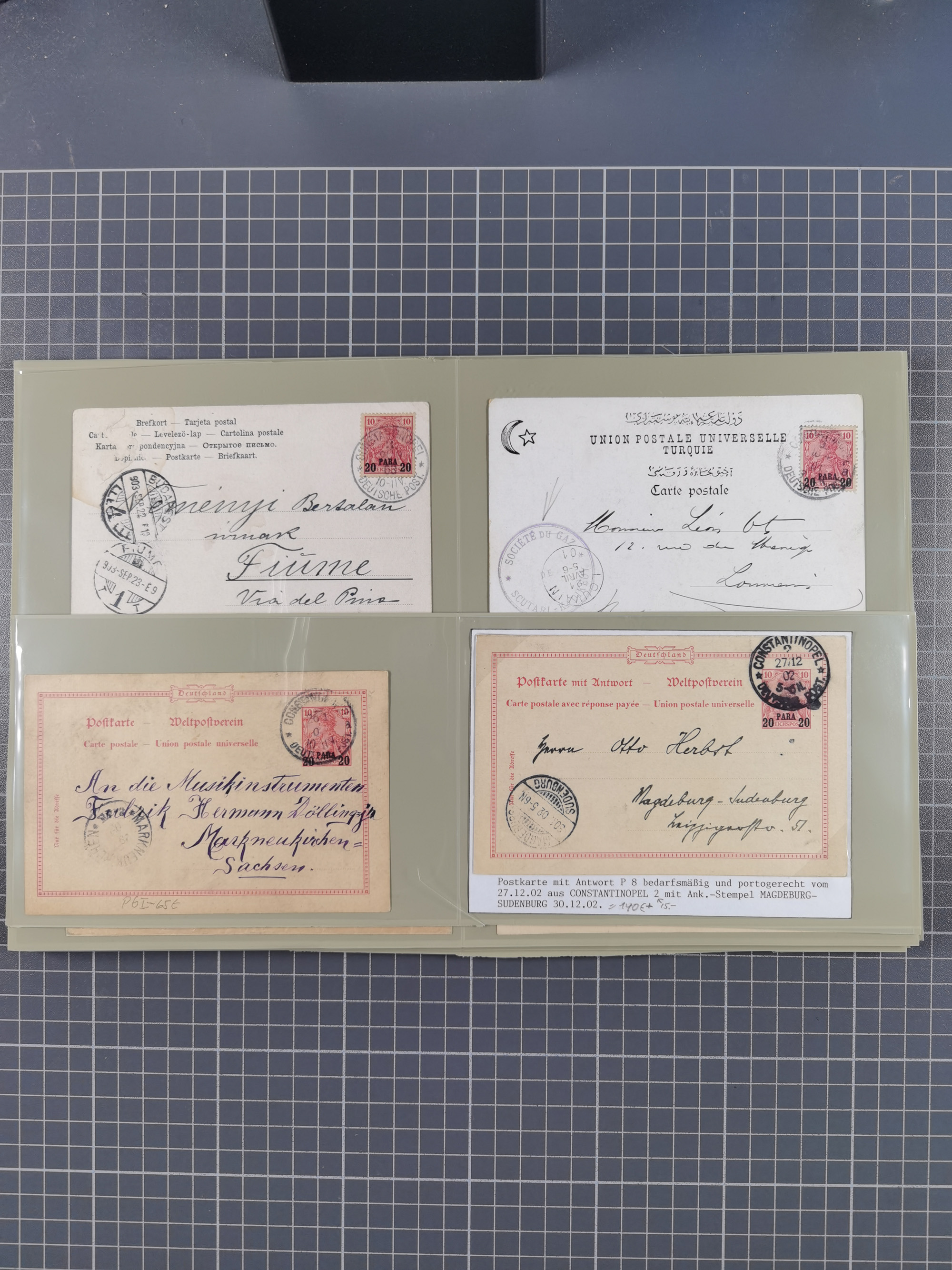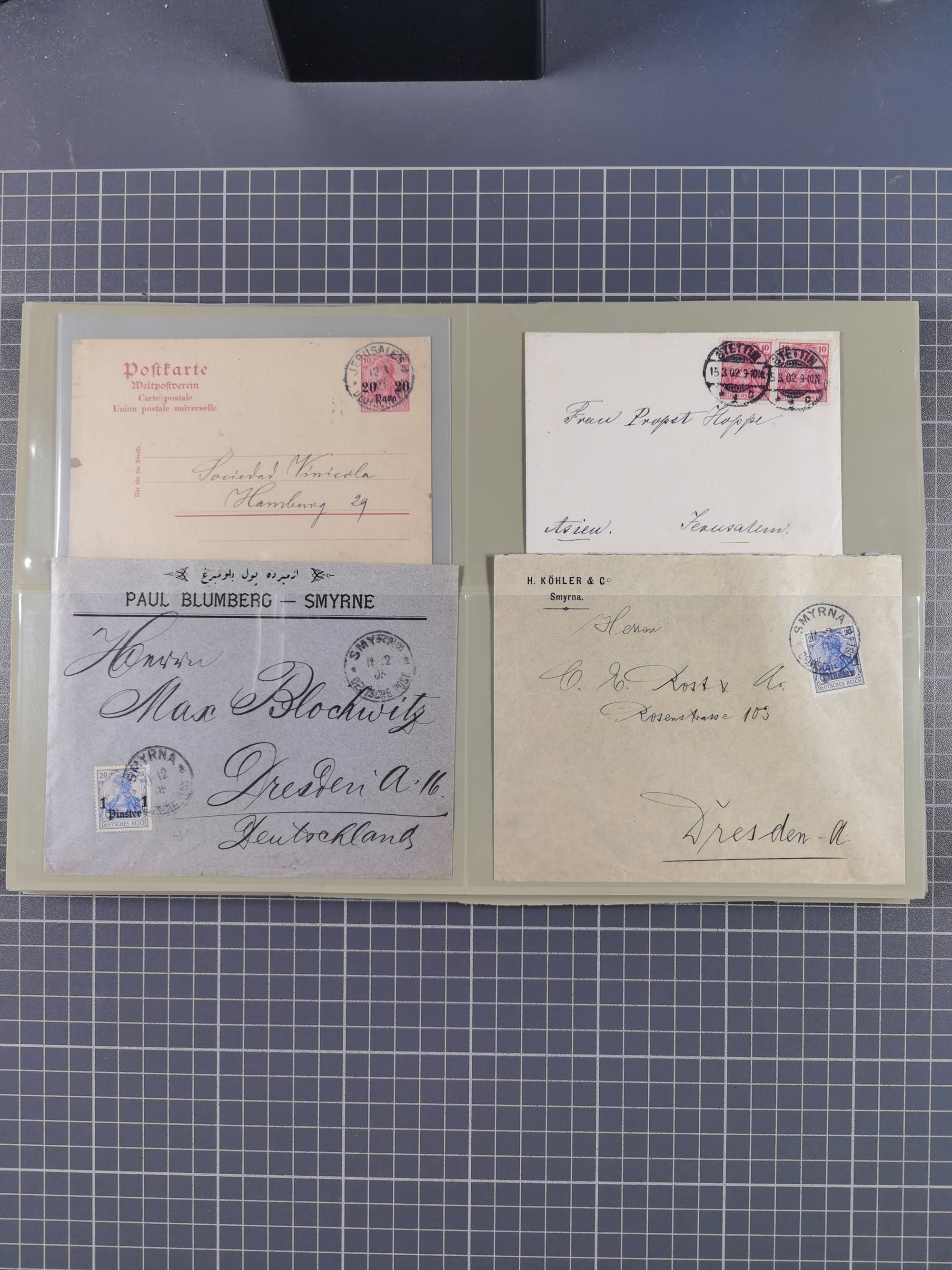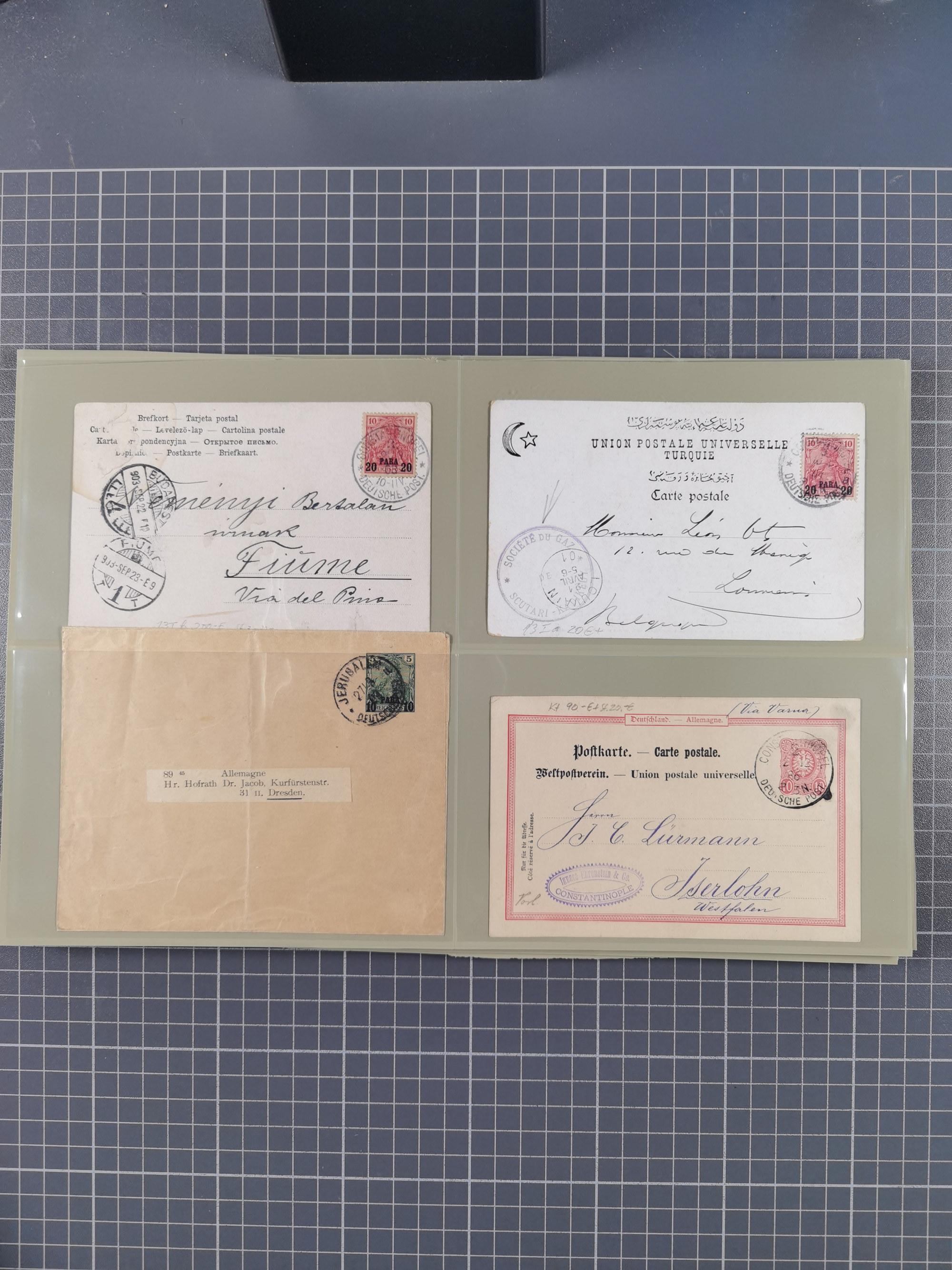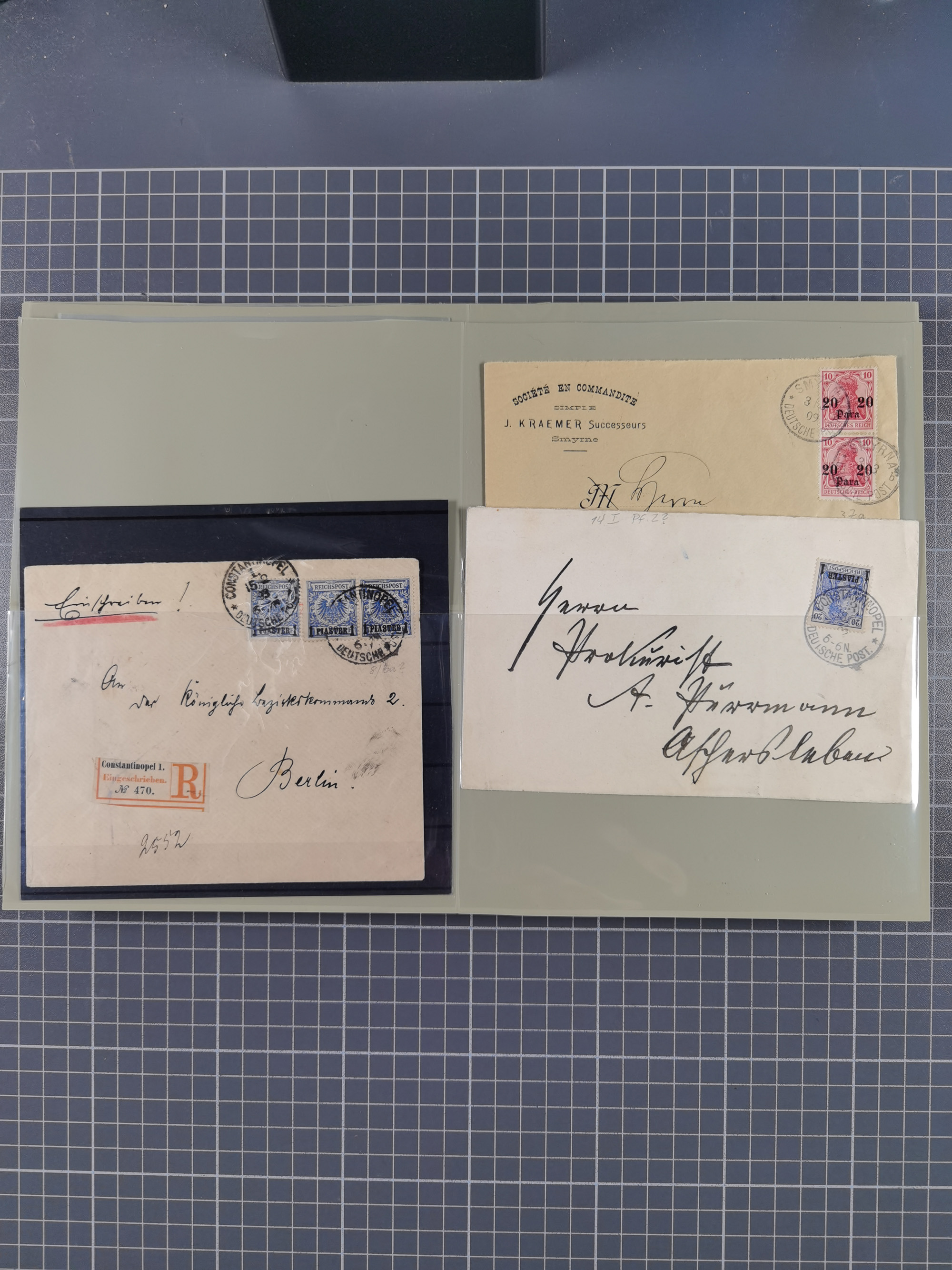 1886/1914 (ca.), Partie mit über 55 Briefen und Karten, Schwerpunt Deutsche Post in der Türkei, Togo und Marocco, interessanten Mehrfach- und Mischfrankaturen, R-Brief und weiteren Besonderheiten, meist in schöner Gesamterhaltung