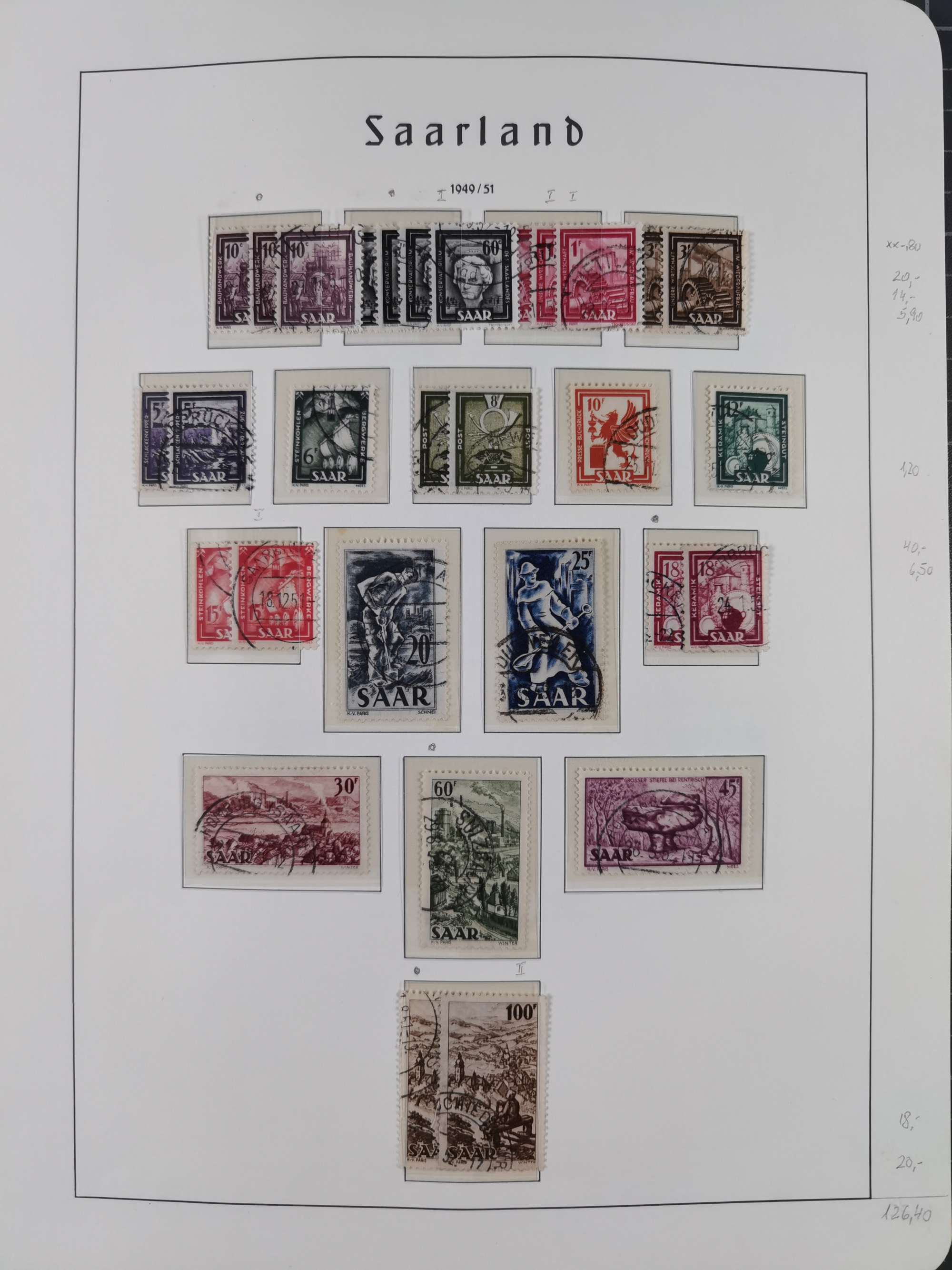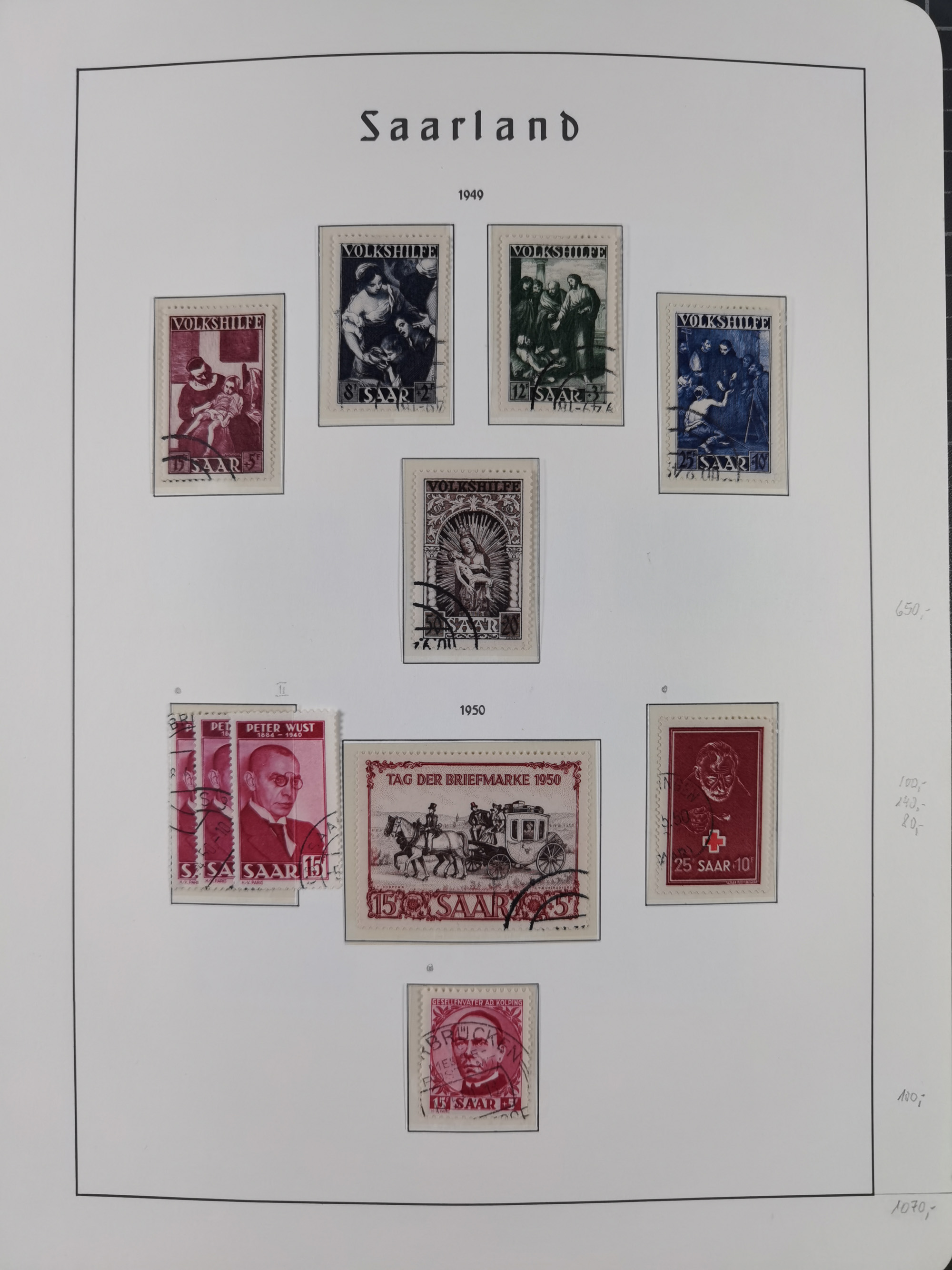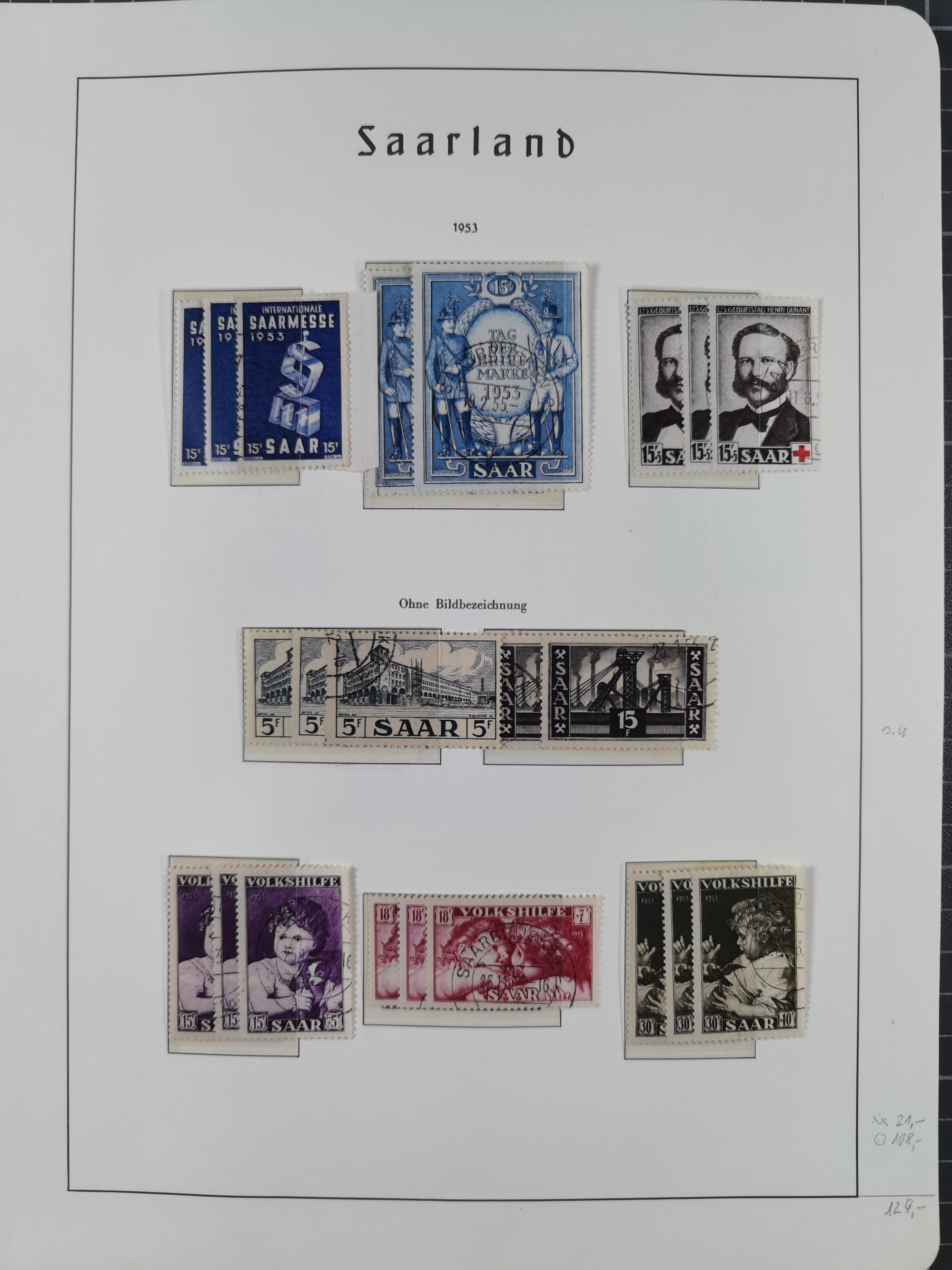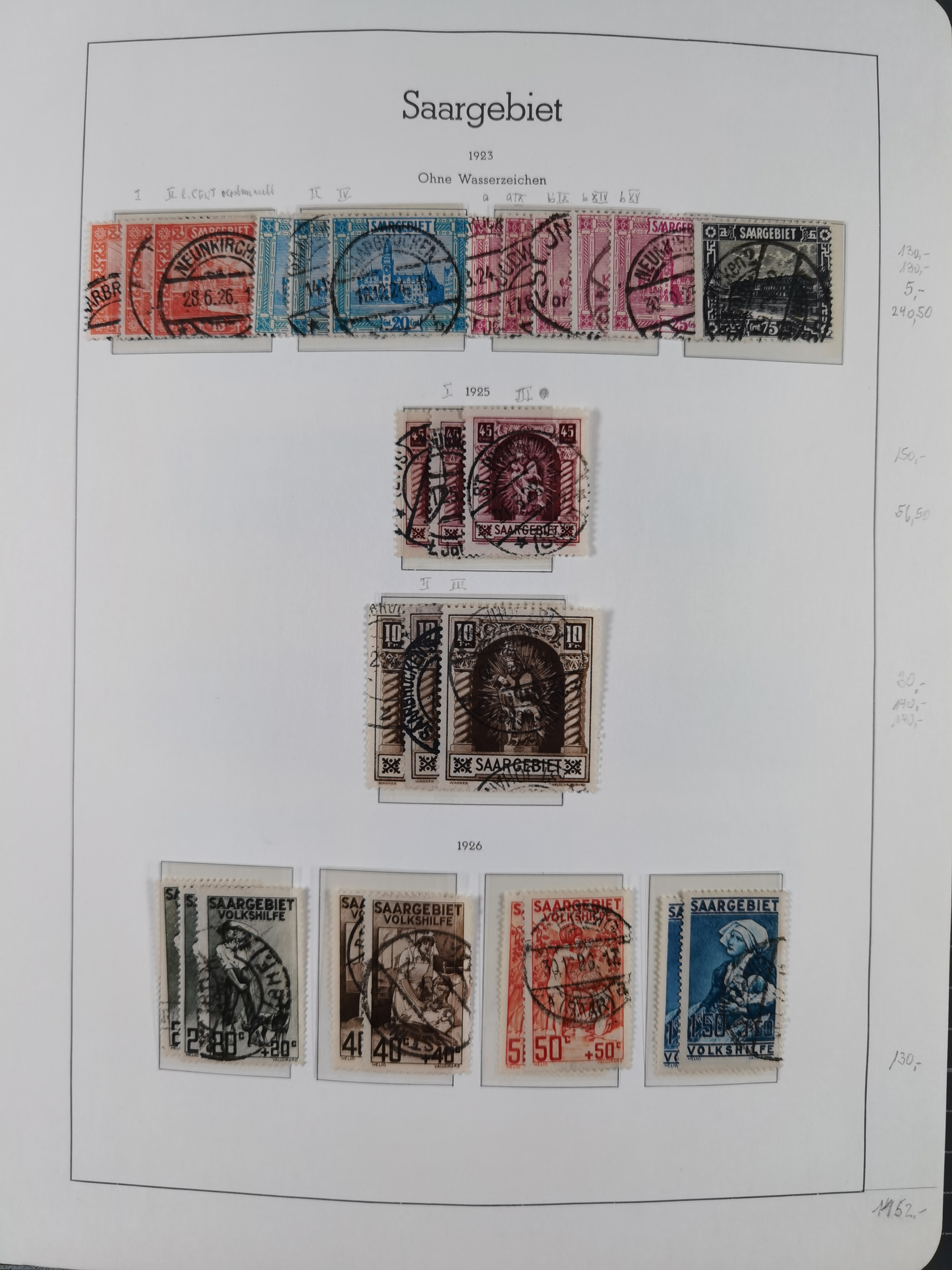 1920/59 gestempelte Sammlung mit besseren und kpl. Ausgaben, dabei u.a. Mi.-Nr. 16 (sign. Dr. Dub) und Mi.-Nr. 18-31 gestempelt bzw. auf Briefstück (3-10 M. sign. Dr. Dub). Ab ca. 1928 mit einigen kpl. Ausgaben, zum Teil signiert Hoffmann BPP und nach 1945 auch vieles mehrfach vorhanden, sauber im Vordruckalbum