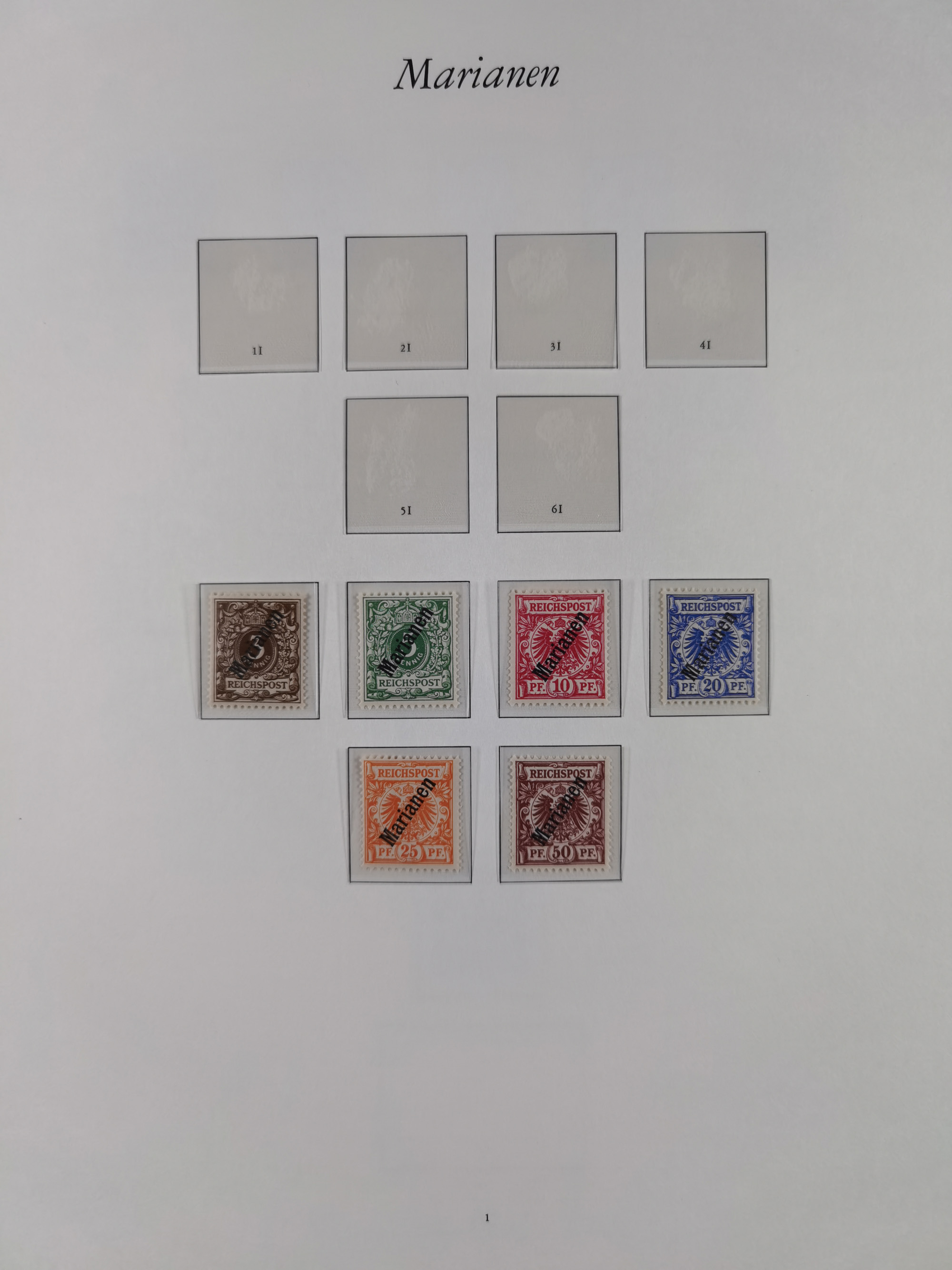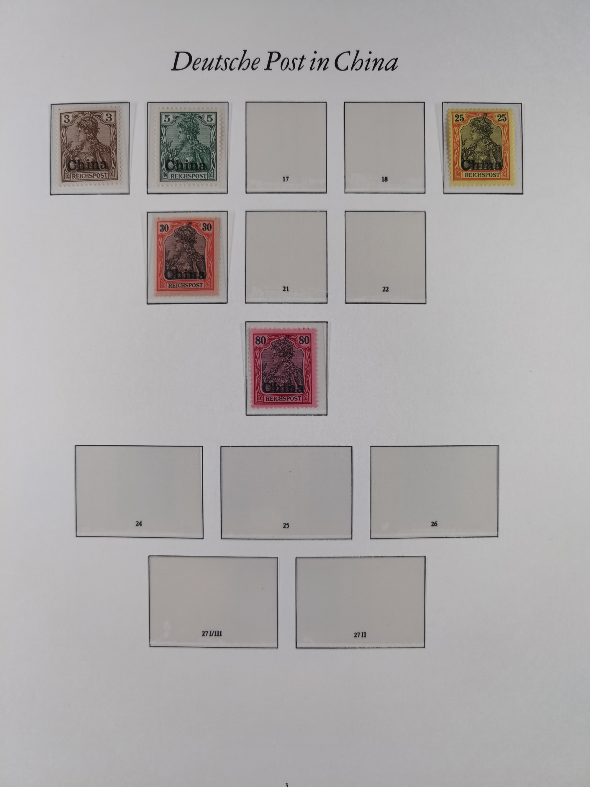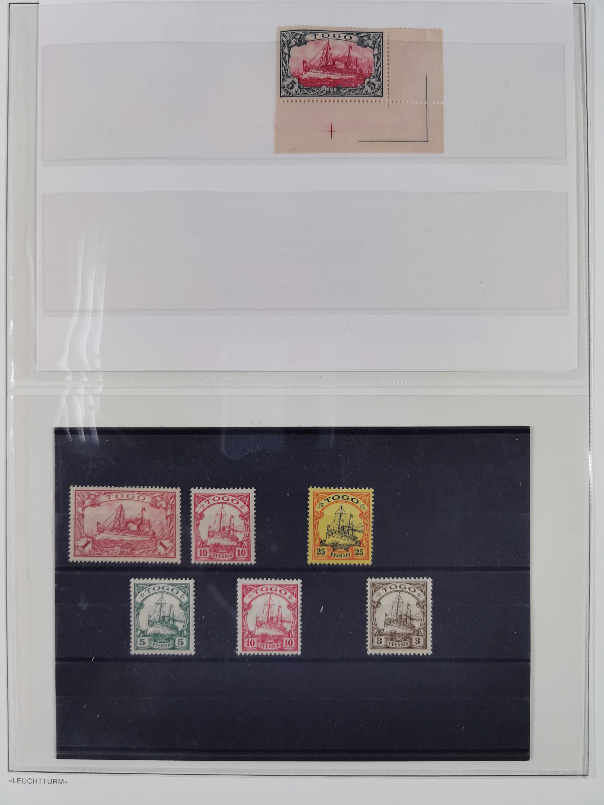 China-Togo, postfrische Sammlung mit besseren Ausgaben aus Borek Abonnement, dabei Mark und Dollar Werte, u.a. DSWA Mi.-Nr. 23, Marianen 1-6II und 19 sowie Togo 19 Bogenecke, gute Erhaltung