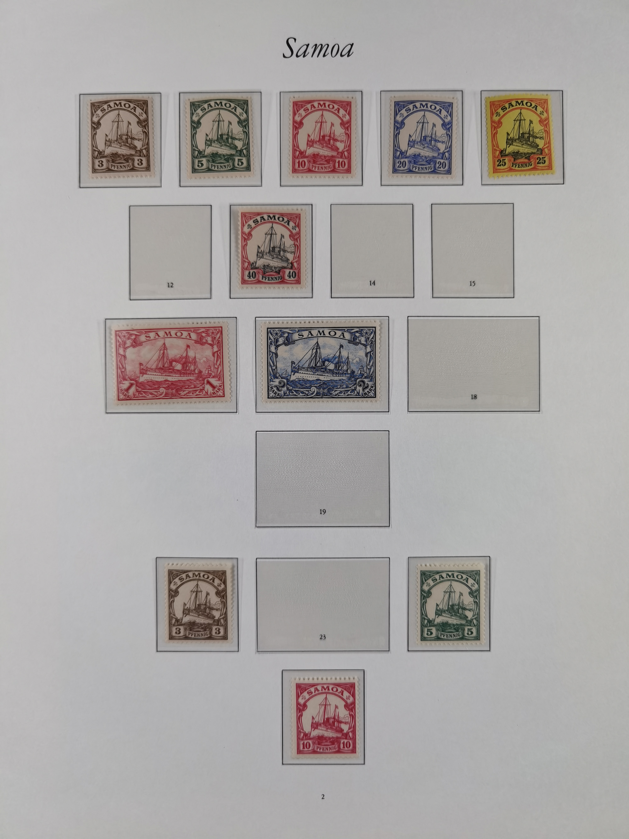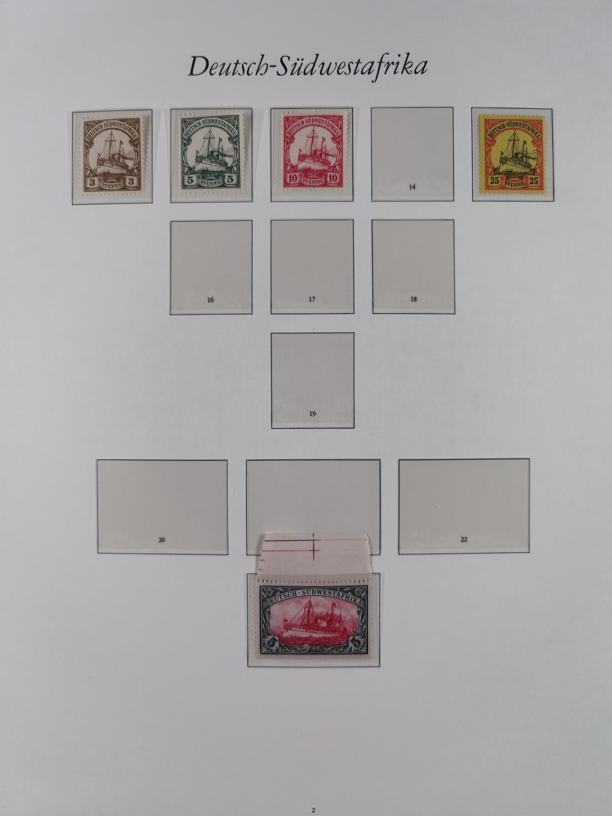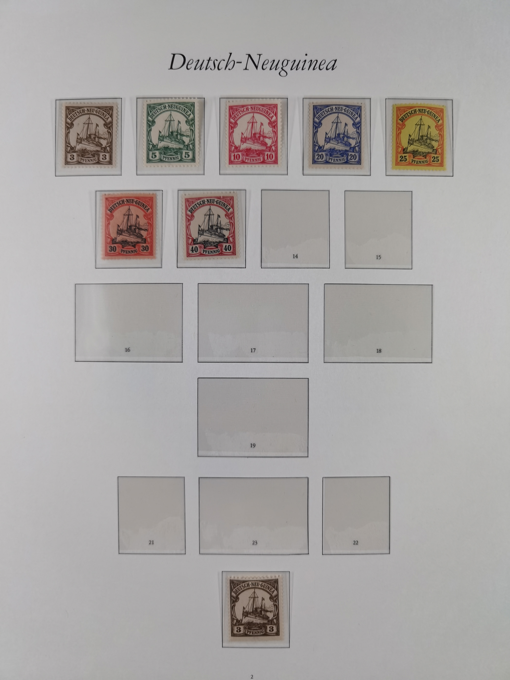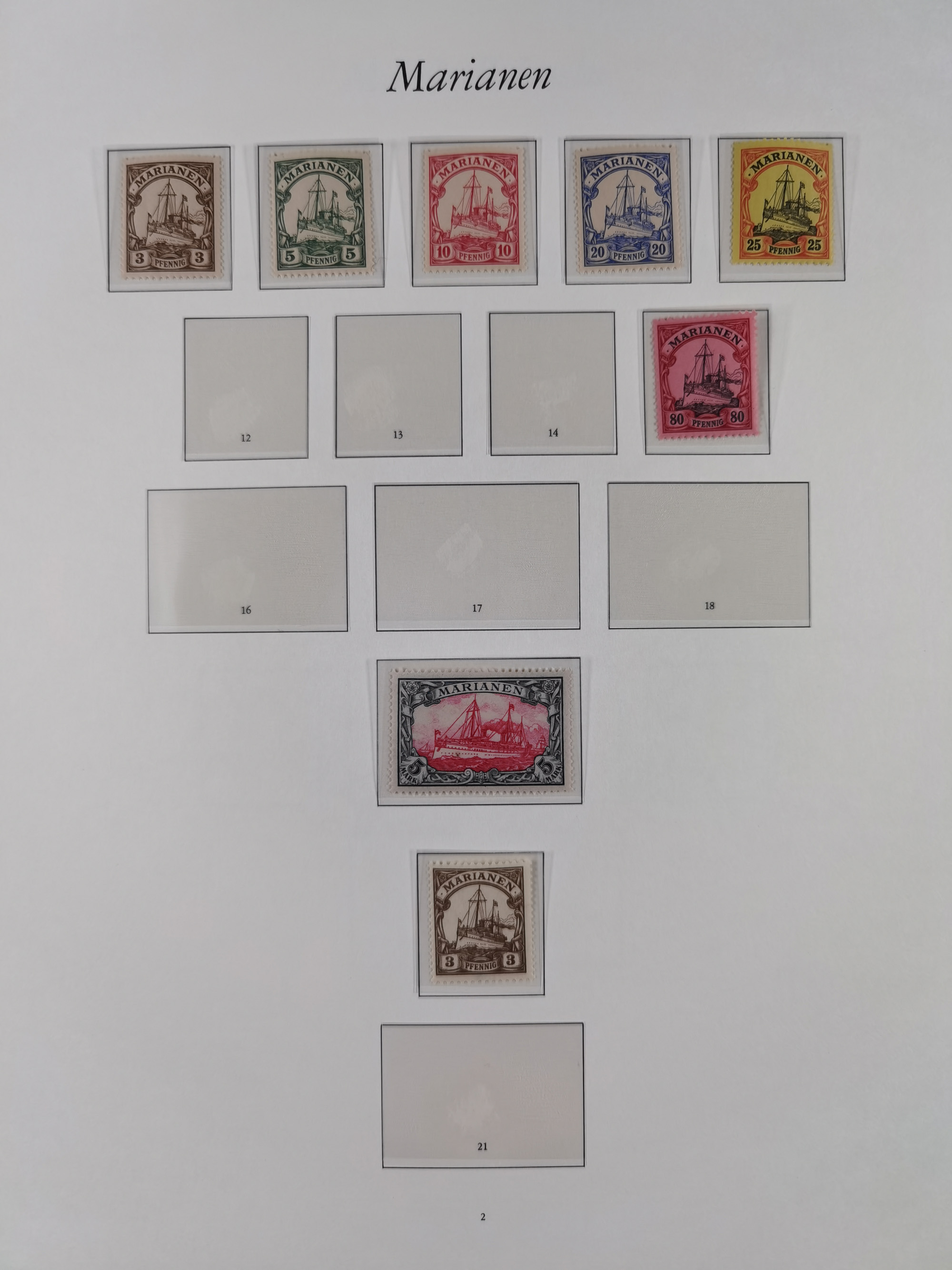 China-Togo, postfrische Sammlung mit besseren Ausgaben aus Borek Abonnement, dabei Mark und Dollar Werte, u.a. DSWA Mi.-Nr. 23, Marianen 1-6II und 19 sowie Togo 19 Bogenecke, gute Erhaltung