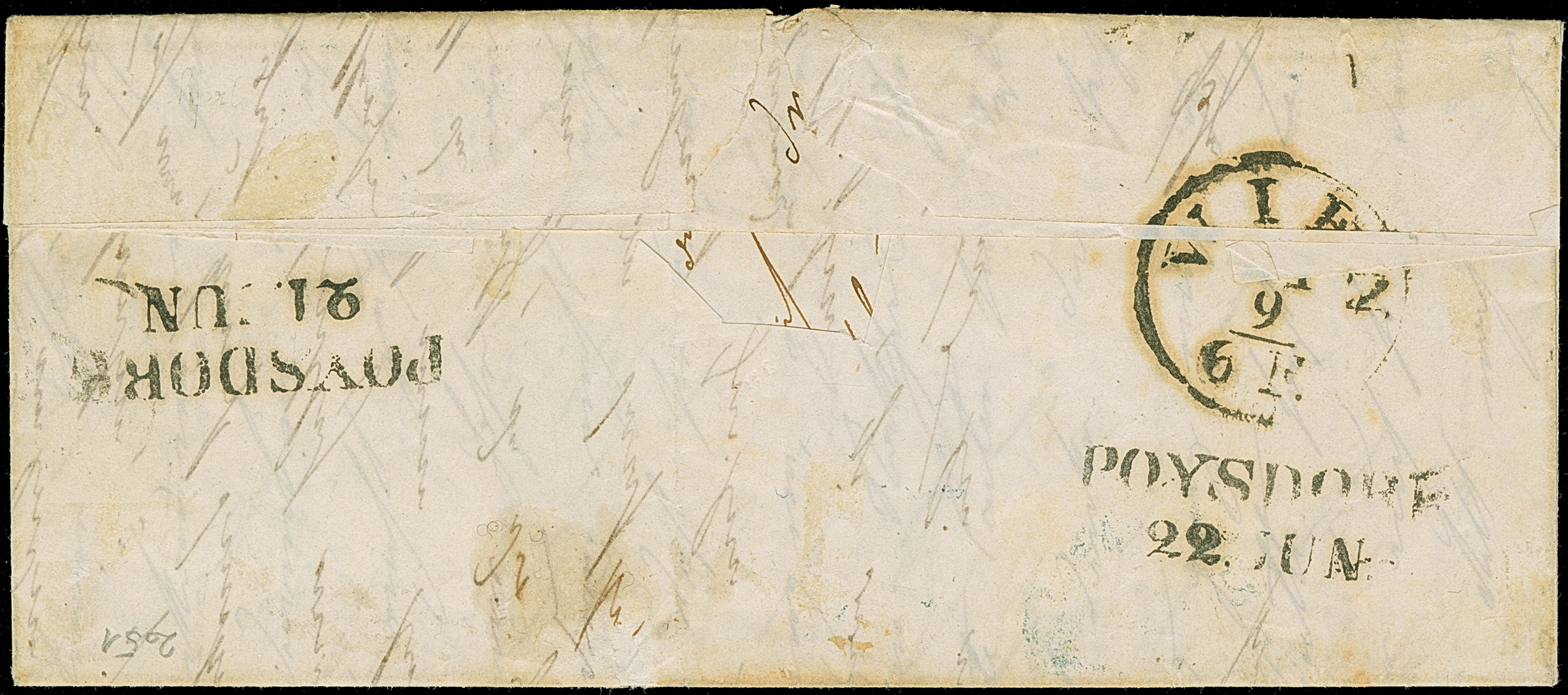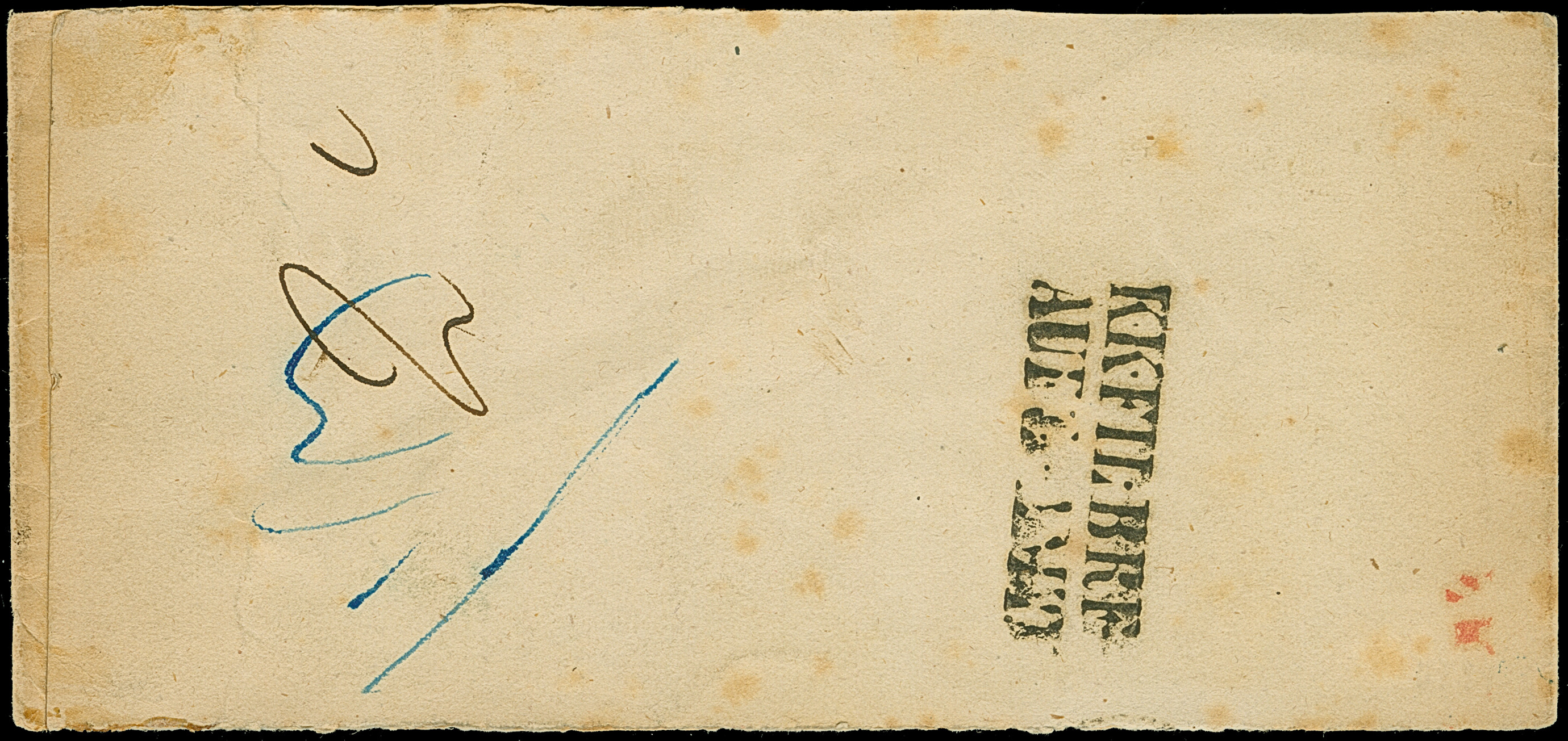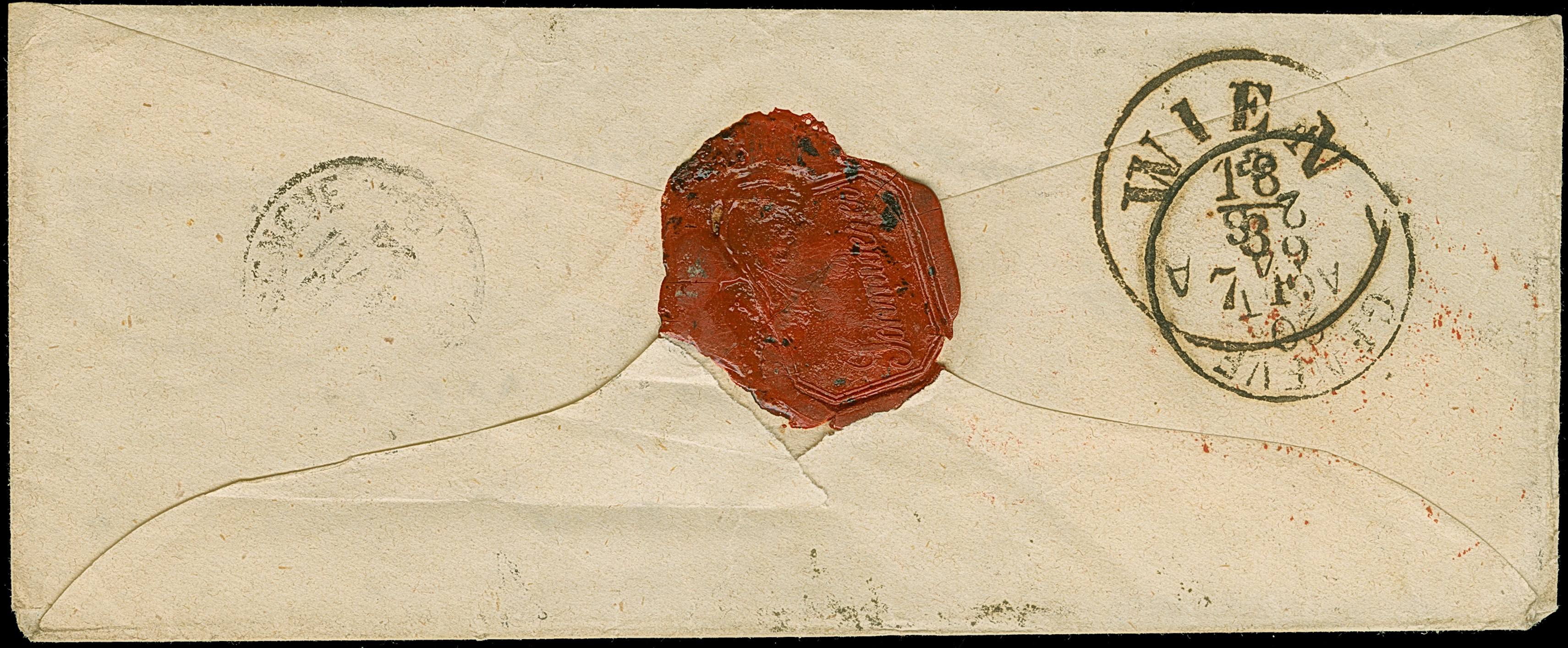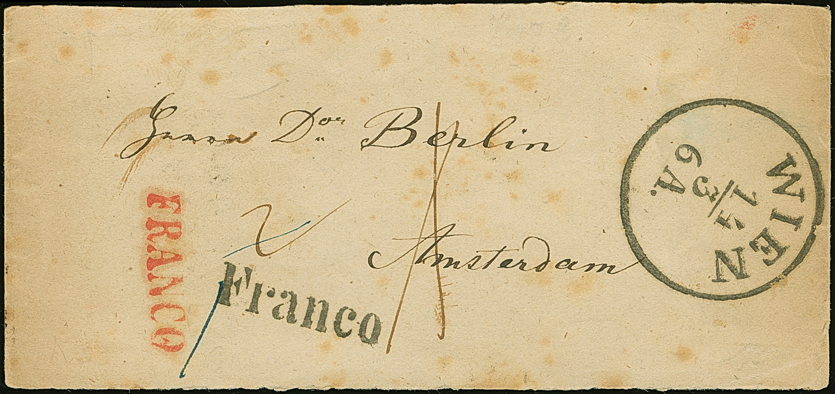 1852 (ca.), Streifband aus “WIEN 14-3” nach Amsterdam mit nebengesetztem schwarzen und rotem “FRANCO”, rückseitig L2 “KK FIL BRF”, etwas getönt und fleckig, sehr selten