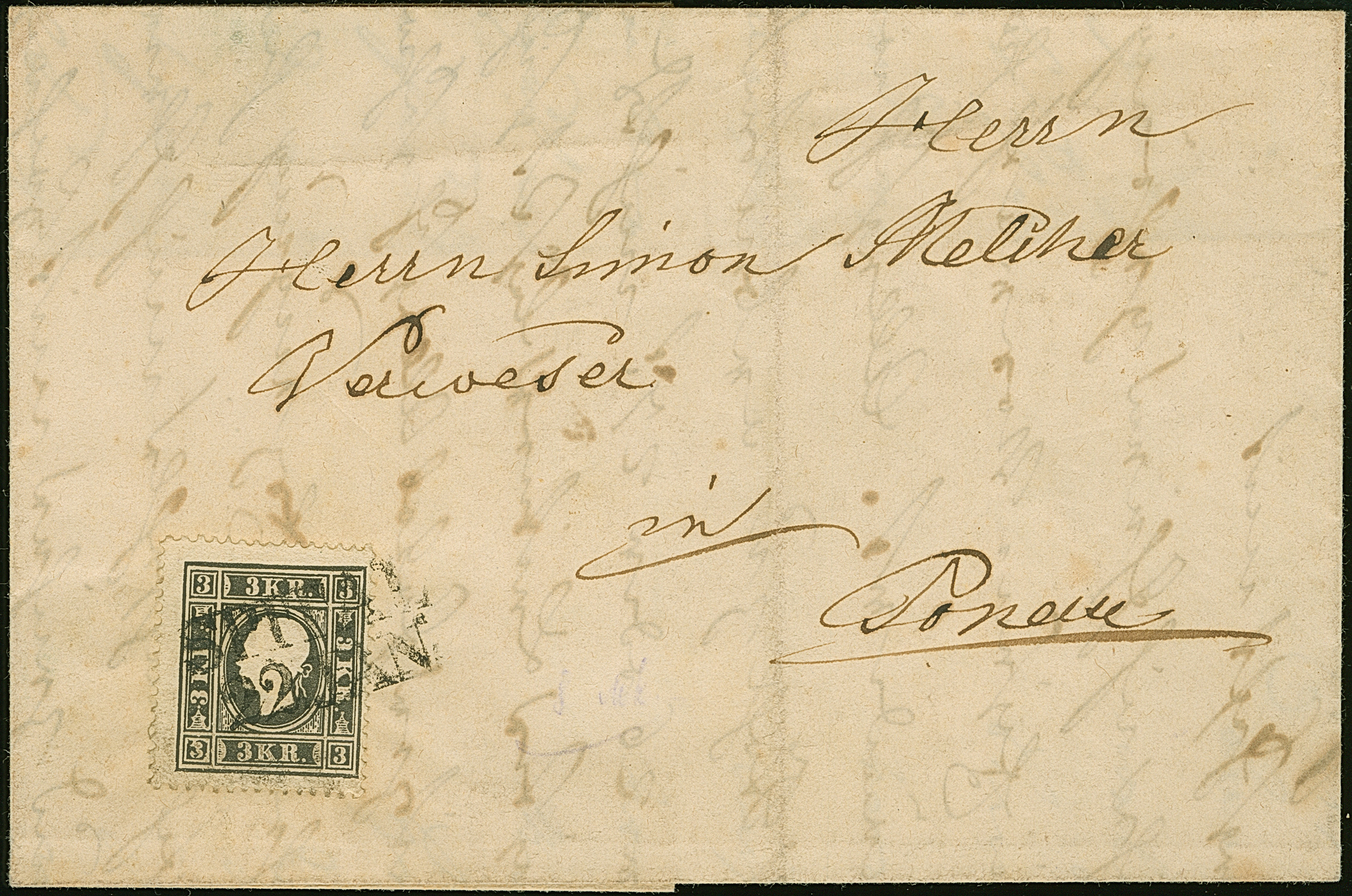 1860, Franz Joseph 2 Kr. hellgelb in Mischfrankatur mit 1863 Doppeladler 2 Kr. gelb weit gezähnt, mit Stempel “WIEN 21 6” auf Drucksache “Wasch-Präparat” nach Kwassitz mit Ankunftsstempel, die Ausgabe 1860 Franz Joseph seit dem 31.5.1864 ungültig, entsprechend mit Federzug entwertet und nebengesetzt Hinweis “ungültige Marke”, gerine Alterstönung, ein interessanter Brief in sonst in guter Erhaltung