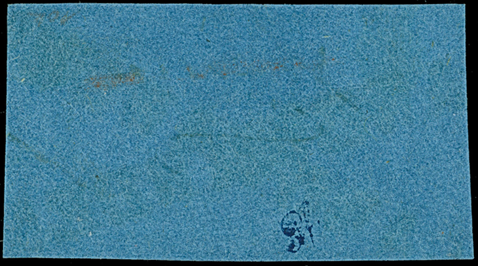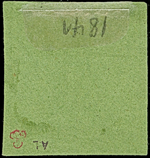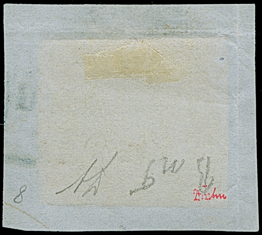 1 Gr. lebhaftgraublau aus der rechten unteren Bogenecke mit 5-6 mm Bogenrand, sauber mit blauem L1 “BERNE”. Die farbfrische Marke ist allseits breitrandig und hat einen waagerechten, kaum sichtbaren, gepressten Bug. Ansonsten ist die Marke in einwandfreier Erhaltung, Kurbefund Stegmüller BPP (2013)