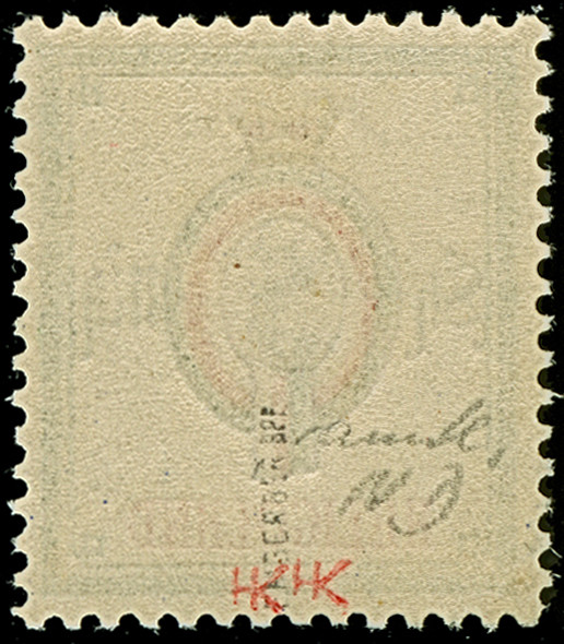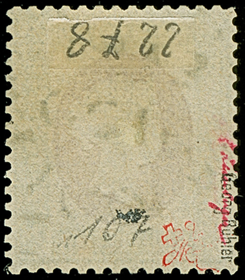 1890, Amtlicher Neudruck 5 M. dunkelgraugrün/karminrot/schwarz, farbfrisch und gut gezähnt, postfrisch, tadellos, eine sehr seltene Marke. Die Auflage betrug lediglich 200 Stück, davon sind 75 Stück in den Handel gelangt, u.a. sign. Lemberger BPP